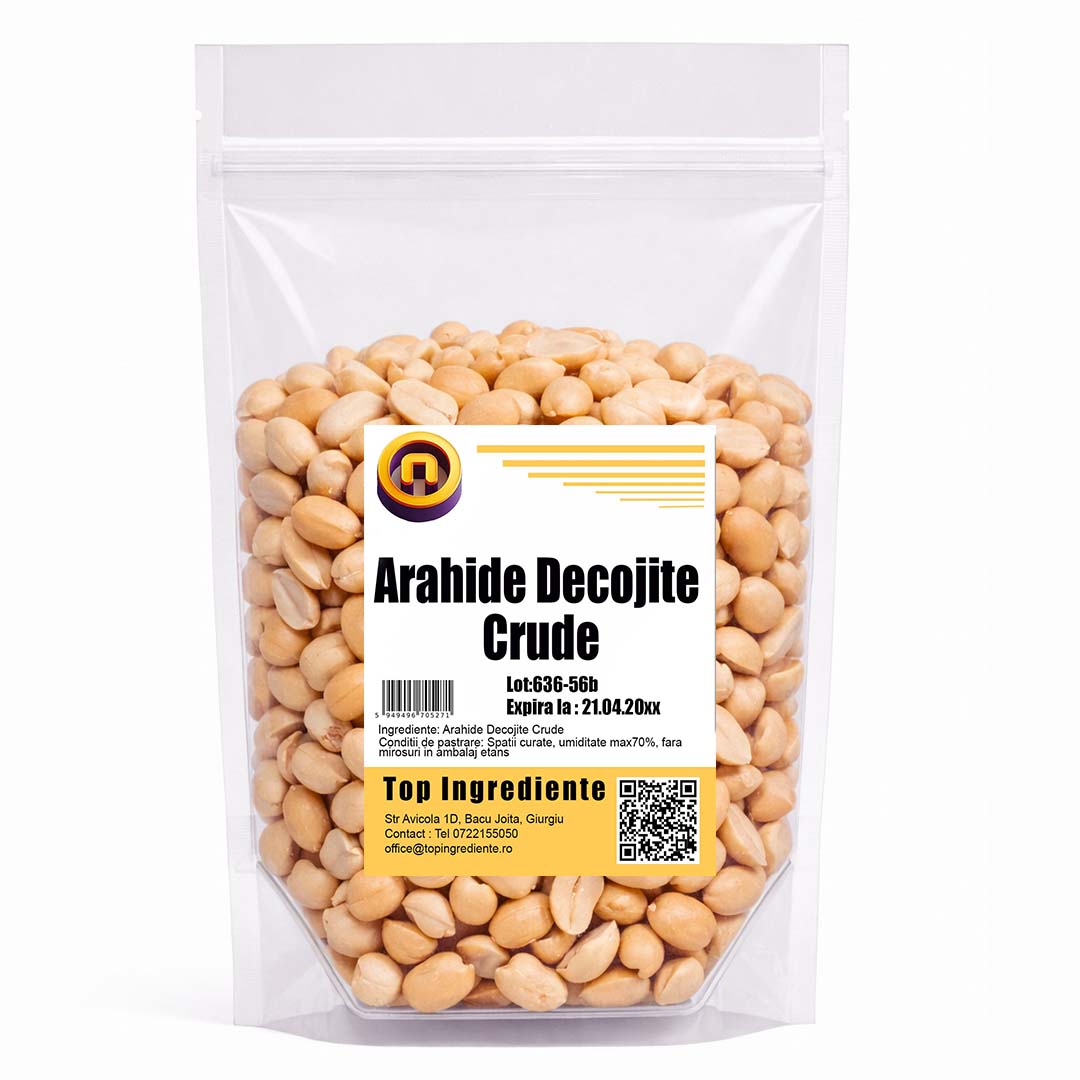 Arahide decojite crude, atent selecționate, neprăjite și fără sare, păstrând gustul natural și proprietățile nutritive ale arahidelor. Prin decojire, produsul devine mai ușor de utilizat și mai versatil, fiind ideal atât pentru consum direct, cât și pentru diverse rețete culinare.