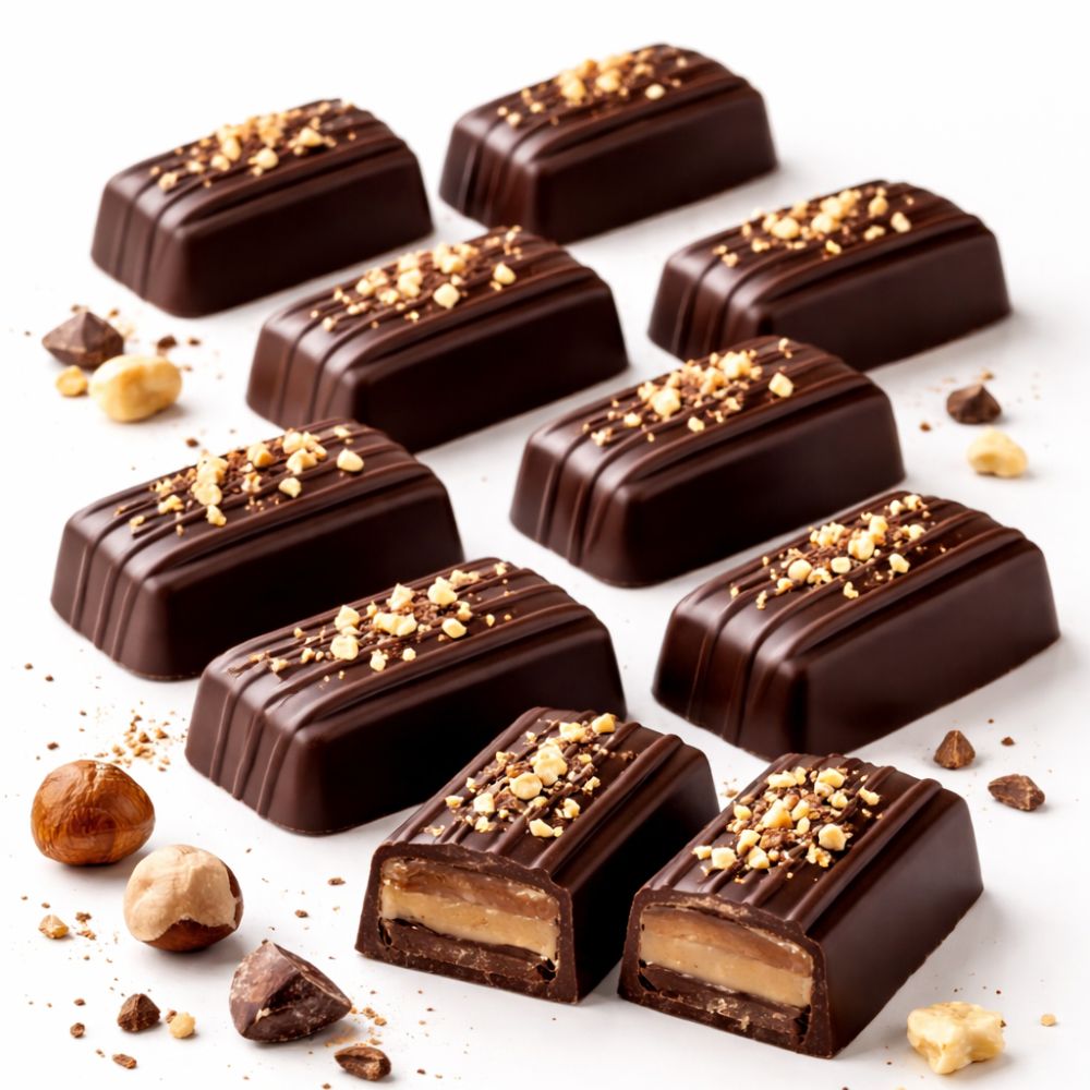 Rezultatul: praline dreptunghiulare lucioase, elegante, perfecte pentru cadouri sau vânzare.